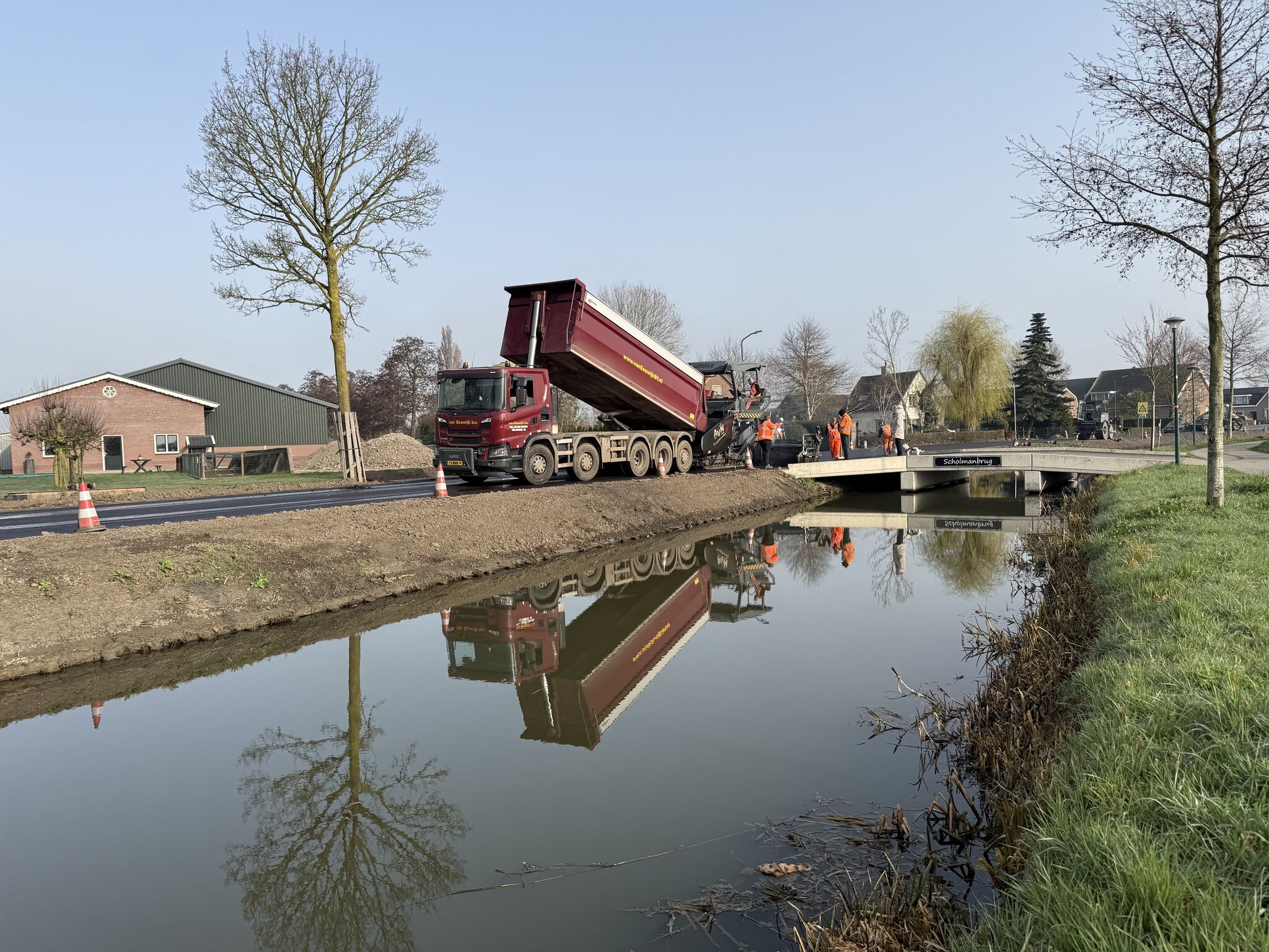 Van Leeuwen Asfalt B.V. heeft in fase 2 de onder- en tussenlagen aangebracht en vervolgens in zowel fase 1 als fase 2 de deklaag, inclusief inritten, verbredingen en brugdekken, in één werkgang aangebracht, met waar nodig inzet van een extra asfaltmachine.