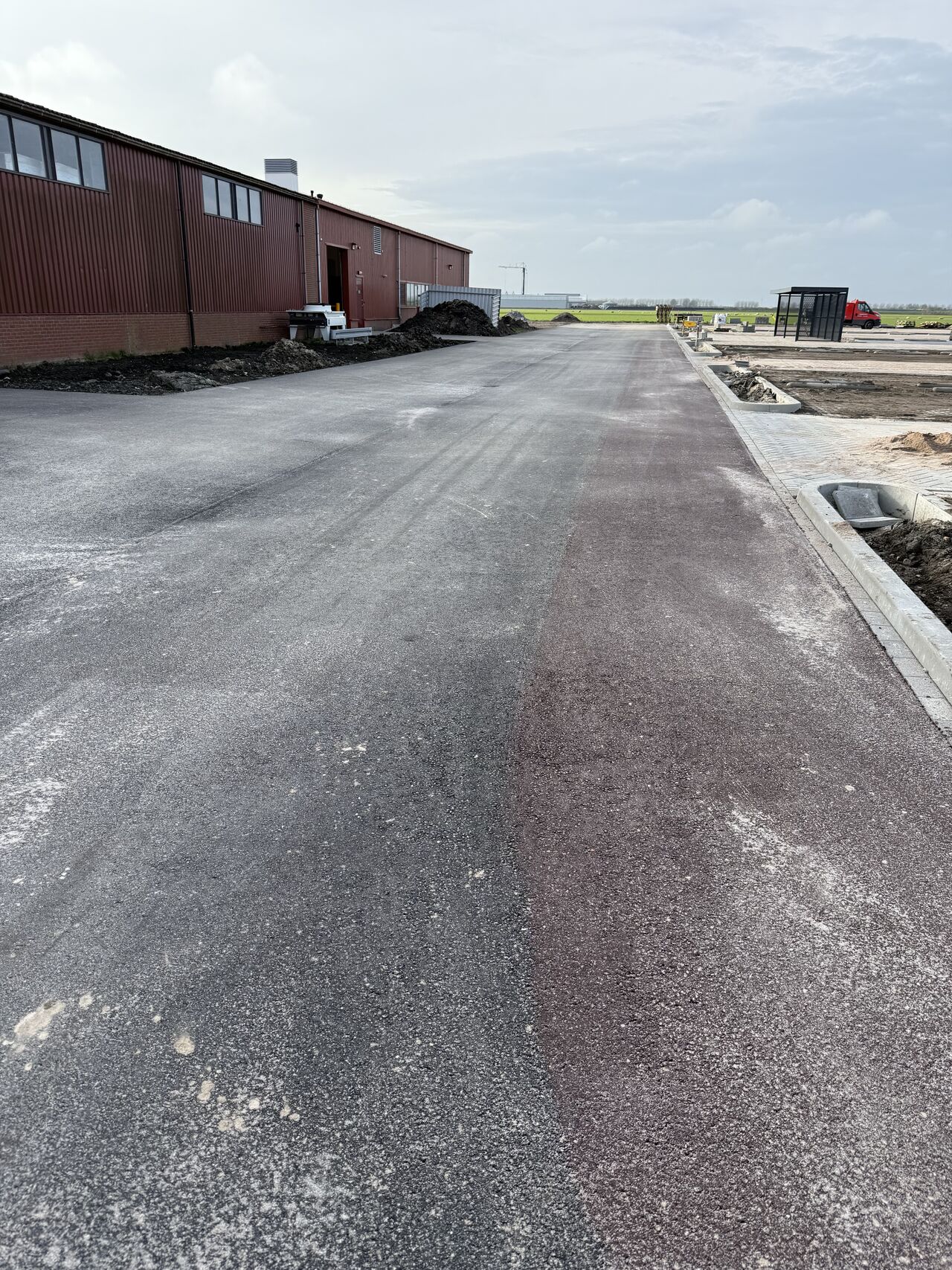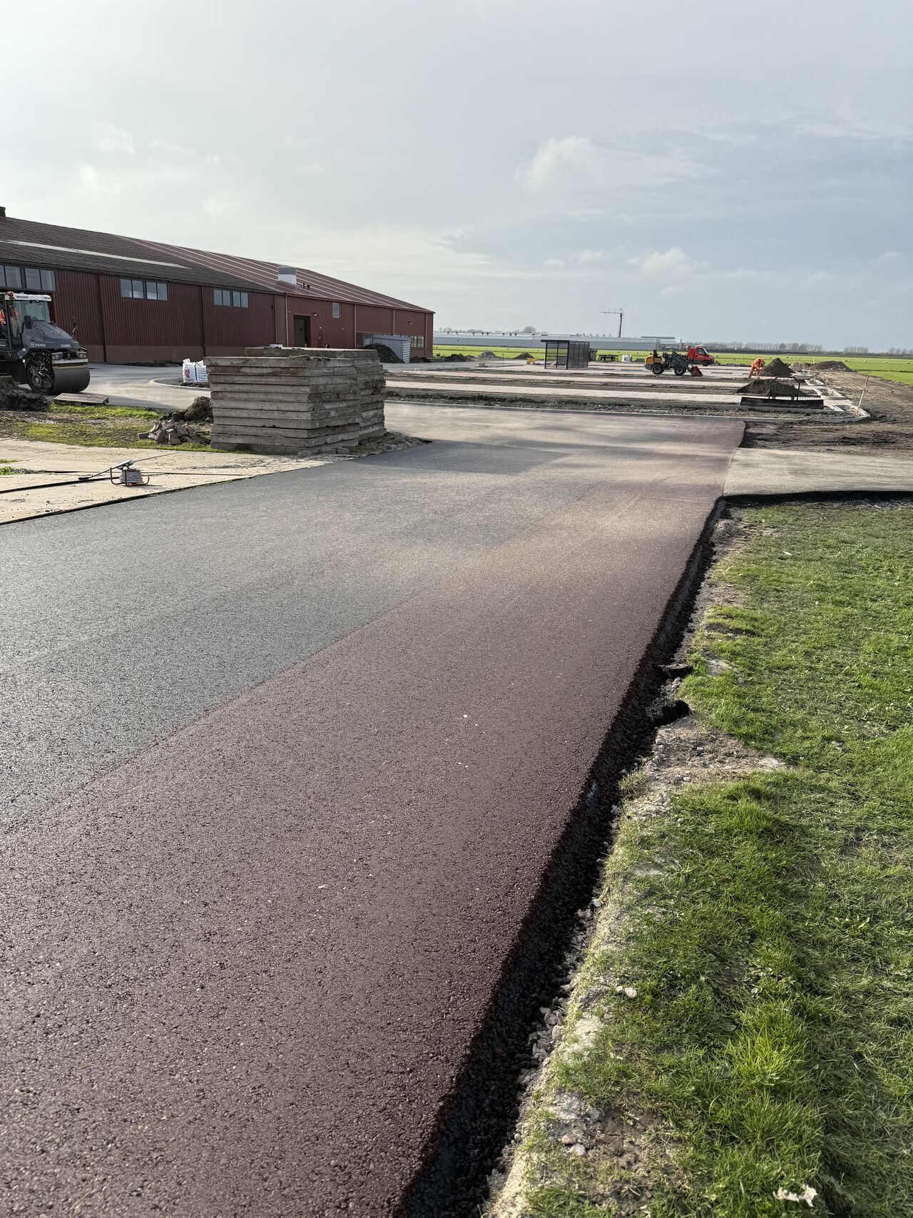 Voor de uitbreiding van de parkeerplaats hebben wij het asfalt van de rijbaan aangebracht.