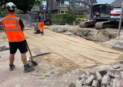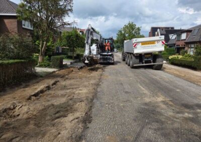 • Het opbreken van de bestaande rijbaan en trottoirs