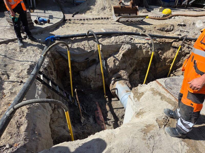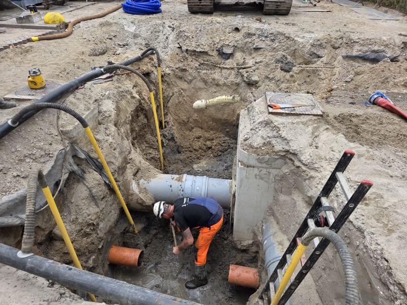 • Het verwijderen van het bestaande persriool en gemengd riool