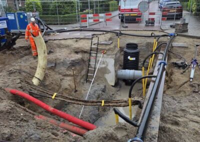 • Het aanleggen van een nieuw infiltratieriool, vuilwaterriool en persriool