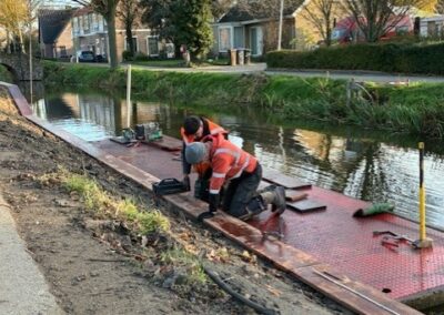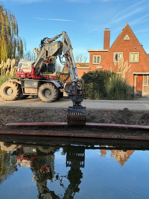 Aan de Lopikerweg Oost te Lopik zijn we bezig met de realisatie van zo’n 2000 meter Prolock Omega. Daarnaast hebben we hier eveneens een aantal meter hardhouten damwand toegepast.